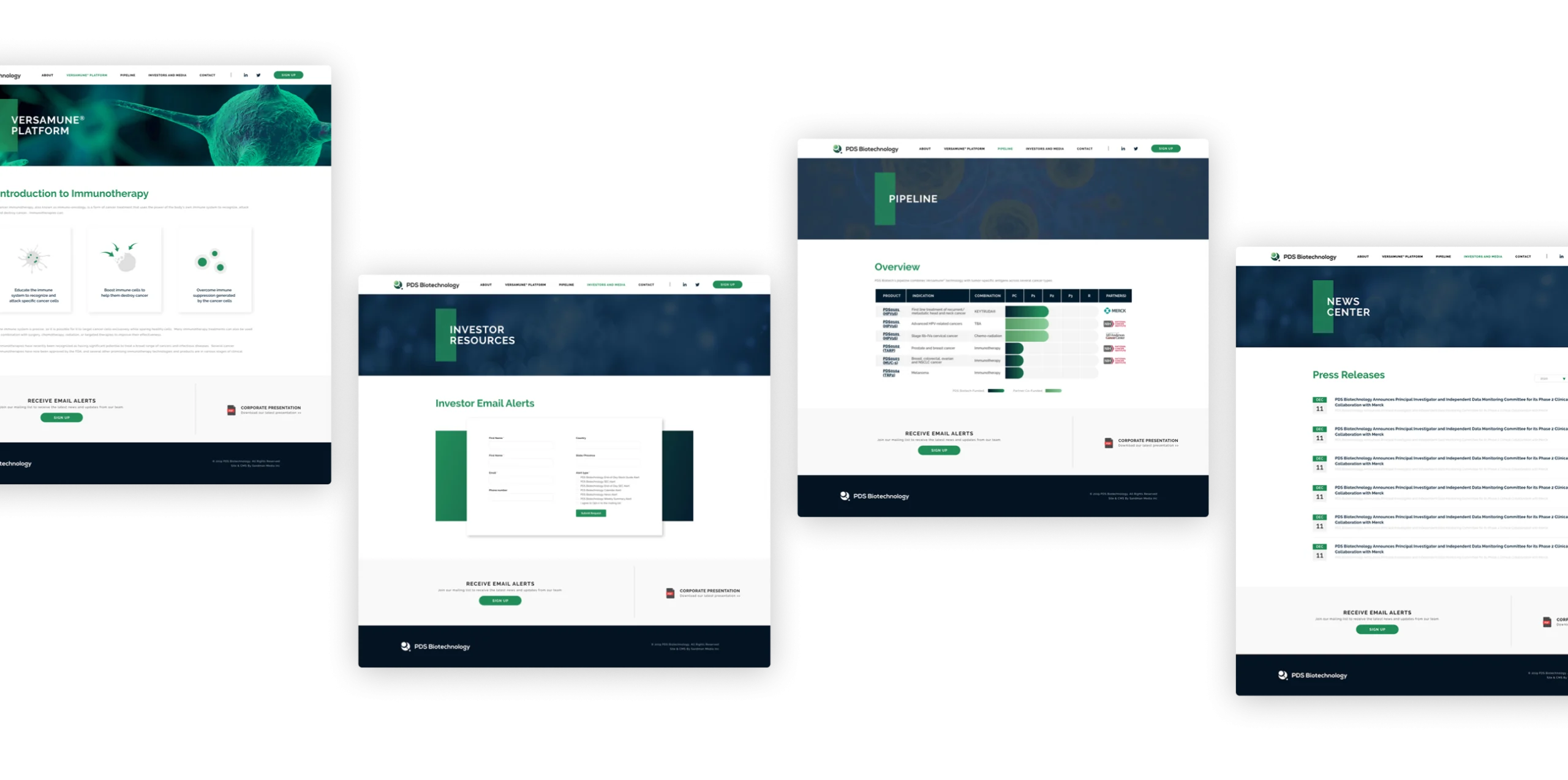 The original PDS Biotechnology website overwhelmed users—investors, researchers, and patients struggled to find relevant information due to dense content, poor structure, and outdated design. It failed to clearly communicate the company’s mission, clinical trial progress, or value proposition.